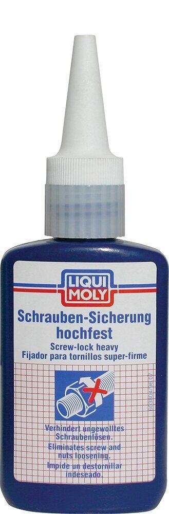 Liqui Moly Schrauben-Sicherung Hochfest для сильної фіксації різьблення спеціально призначено для оптимальної фіксації різьблення, особливо працюючих в мастилі, у тому числі для резьб, що гальванізуються. Спеціальний засіб на основі диметакрилових ефірів, призначений для запобігання відгвинчуванню різьбових з'єднань. Має відмінну стійкість до дії хімічних реагентів і вибрациям.& nbsp;