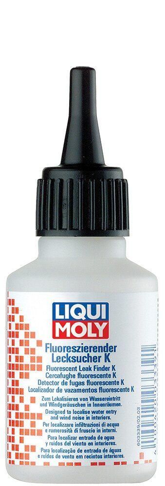 Liqui Moly Fluoreszierender Lecksucher– це флуоресцентна водорозчинна рідина для швидкої і точної локалізації місць проникнення води і повітря (шуму). Розбавлена в необхідній пропорції ця суміш являється флуоресціюючій високій проникності, що має властивість. Локалізувати місця проникнення або витоку можливо в течії декількох хвилин за допомогою індикаторної лампи з ультрафіолетовим излучением.& nbsp;
