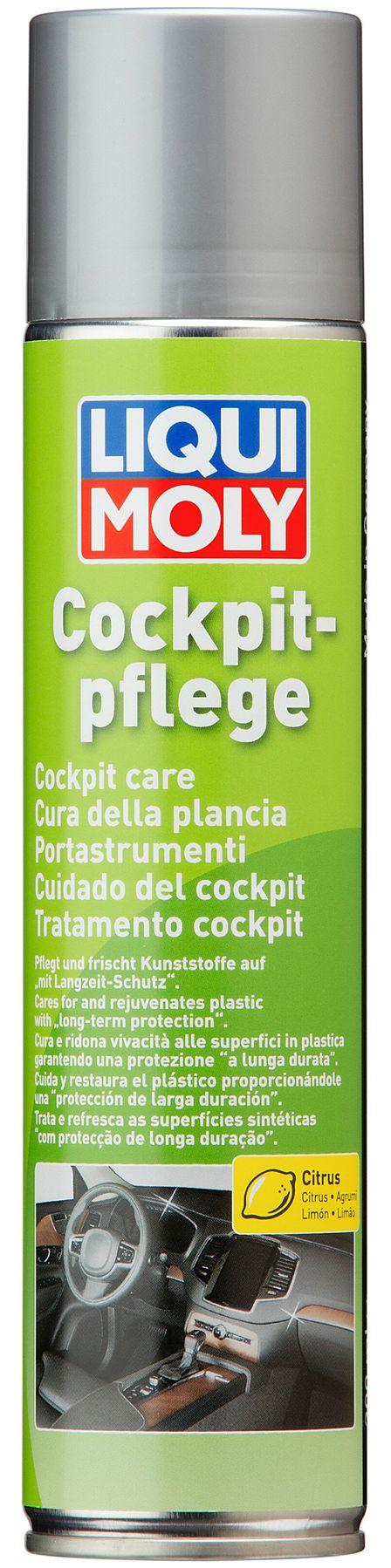 Засіб Liqui Moly Cockpit Pflege призначений, в першу чергу, для догляду за пластиковими деталями. Надає матовим і вицвілим пластиковим деталям первинному вигляду. Глибоко проникає в поверхню і подовжує термін служби пластикових деталей. При обробці цим засобом не залишається слідів жиру, засіб надає антистатичні властивості поверхні, перешкоджаючи осіданню на ній пил. Запобігає неприємному скрипу і скреготу деталей. Надає приємний запах ванілі або лимона. Для всіх матових пластикових деталей: бамперів, спойлерів і так далі