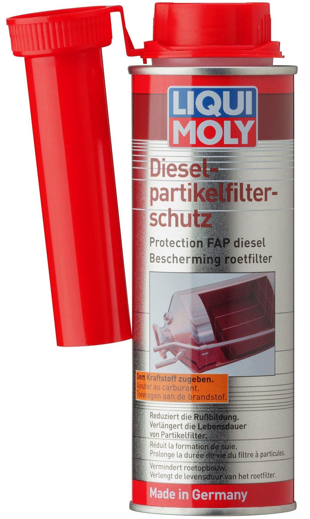 Liqui Moly Diesel Partikelfilter Schutzвисокоефективна присадка в дизпаливо, що зменшує сажоутворення, тим самим що полегшує роботу і збільшує термін служби фільтру сажі DPF. Дизельні автомобілі, експлуатовані в міських умовах і на коротких дистанціях, зазнають проблеми засмічення фільтру сажі. Регулярна добавка присадки підтримує фільтр сажі в чистоті, дозволяючи уникнути дорогого ремонту і витрат часу. Використання присадки для захисту фільтру сажі дозволяє скоротити емісію вихлопних газів.
