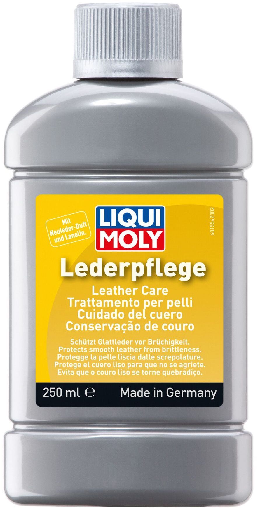 Високоякісна емульсія для догляду і чищення гладкої і штучної шкіри. Зберігає структуру, шорсткість і еластичність шкіри і захищає від бруду і зносу. Вигладжує вживані та злегка зношені шкіряні поверхні та надає їм шовковисто-матовий глянець. Регулярне застосування продукту дозволяє поліпшити зовнішній вигляд шкіри, запобігти її передчасному вицвітанню і продовжити термін служби матеріалу. Не містить барвників і може застосовуватися для всіх відтінків шкіри. Світлу шкіру, забруднену темними плямами, слід заздалегідь очистити універсальним очисником LIQUI MOLY-Universalreiniger (номер виробу 1653).