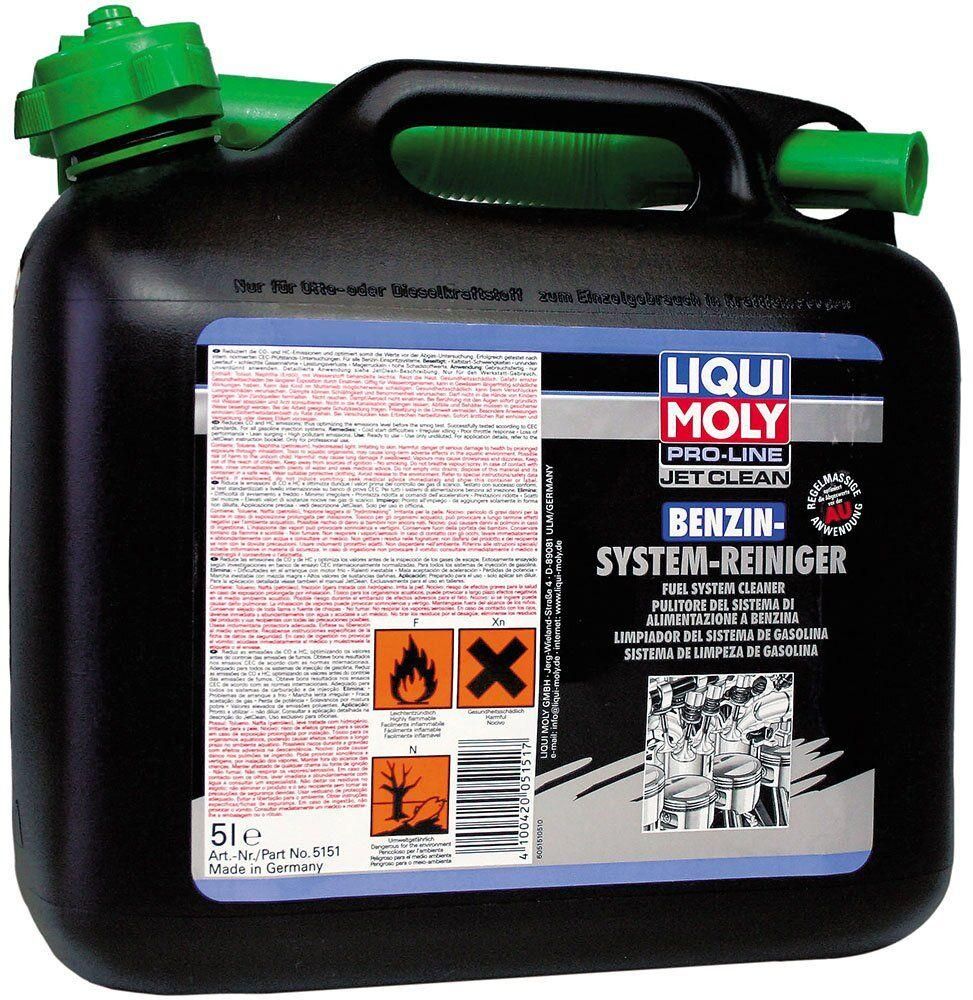 Liqui Moly Benzin-System-Intensiv-Reiniger - очисна рідина для паливних систем за допомогою апарату JetClean Plus. Знижує зміст З і СН у вихлопі. Рідина пройшла випробування на відповідність міжнародним нормам CEC. Усуває проблеми при холодному запуску двигуна, нерівномірність холостого ходу, падіння потужності та прийомистості, втрату плавності ходу, високий вміст токсичних речовин у вихлопі. Піднімає компресію за рахунок раскоксовки кілець і очищення фасок клапанів. Не впливає на гумові ущільнення і шланги.