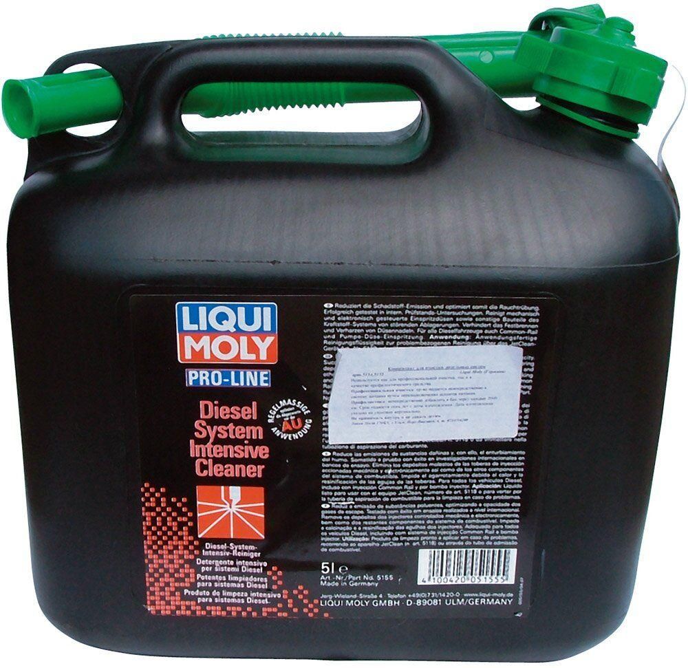 Liqui Moly Diesel-System-Reiniger- очищаюча рідина для дизельних систем вприскування палива, застосовується через апарат JetClean Plus. Знижує зміст З і СН у вихлопі та зменшує димність. Рідина пройшла випробування на відповідність міжнародним нормам. Очищає форсунки і паливну систему в цілому від відкладень, що утворилися. Усуває закоксовку кілець, піднімає компресію. Запобігає утворенню нагари і відкладень на голках форсунок. Оптимізує процес згорання, таким чином, двигун знову придбаває потужність і прийомистість.