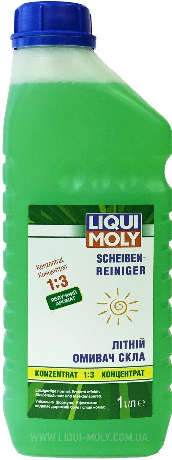 Рідина для очищення скла Liqui Moly Scheiben-Reiniger - спеціально призначена для використання в миючих системах автомобілів і для ручного очищення автомобільних скла. Із запахом яблука. Без фосфатів, біологічно розкладаний.
