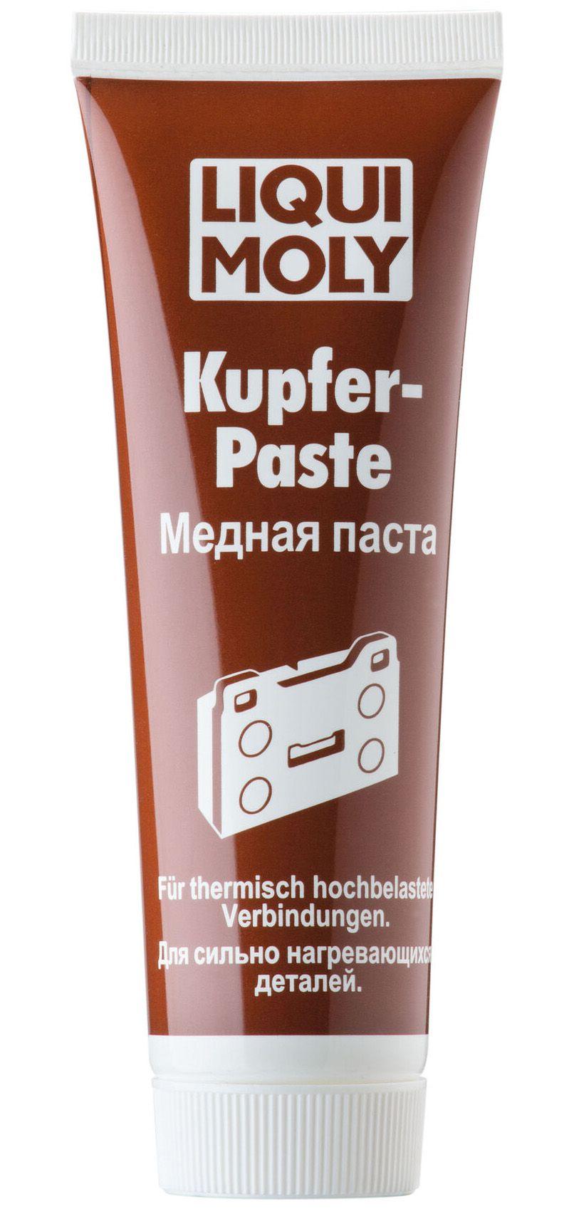 Liqui Moly Kupfer-Paste– спеціальна високотемпературна мідна паста, призначена для різьбових з'єднань та інших поверхонь, що піддаються діям високої температури, тисків і корозійно-активного середовища, наприклад, в компресорах, турбінах, системі вихлопу, свічках запалення, гальмах. Температурний діапазон застосування від-30°З до +1100°С. Застосування: для змащення і антикорозійного захисту деталей, схильних до дії високих температур. Для хімічної і нафтохімічної промисловості, в енергетиці, керамічній промисловості, в машино- і автомобілебудуванні (для гальмівної системи і системи вихлопу).