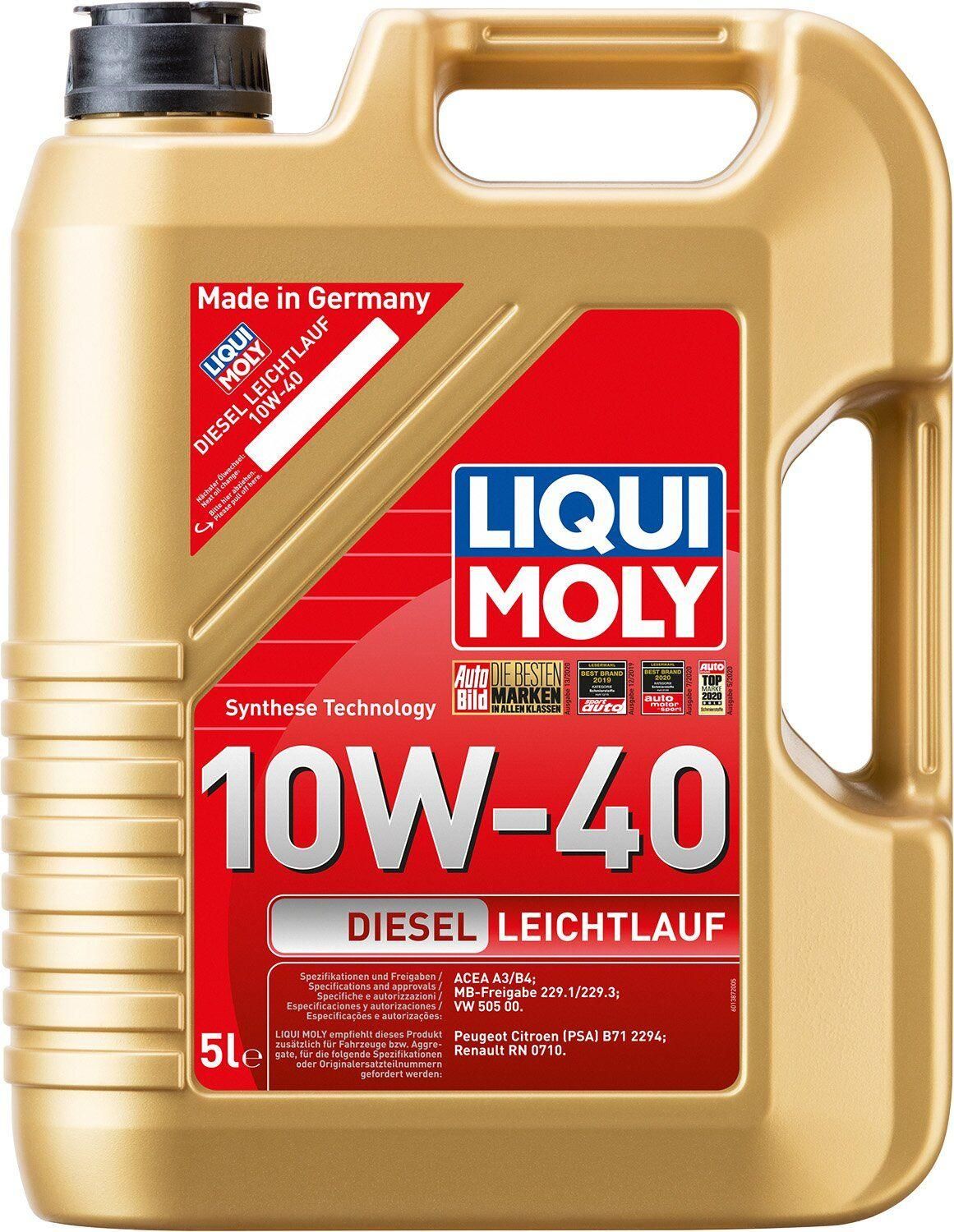 Моторне напівсинтетичне мастило  (НС-технологія) для дизельних двигунівLiqui Moly Diesel Leichtlauf 10W-40 є високопродуктивним моторним мастилом, з хорошими антифрикційними властивостями, отримане з використанням найсучаснішої технології присадок і базових олив. По здатності перешкоджати утворенню відкладень ця олива спеціально призначена для дизелів, працюючих з великим утворенням сажі. Воно придатне для всесезонного використання в дизельних двигунах легкових автомобілів з газотурбінним наддуванням або без нього, а також з охолоджувачем наддувочного повітря. Мастило відповідає вимогам найсучаснішої концепції двигунів.