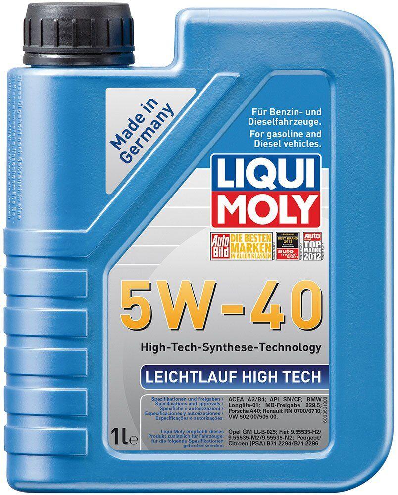 Моторне мастило Liqui Moly Leichtlauf High Tech 5W-40 - сучасне легке моторне мастило руху вищого класу для цілорічного застосування у бензинових і дизельних двигуна без фільтру (DPF) сажі. Комбінація нетрадиційних базових олив на основі технології НС-синтезу з найновішими присадними технологіями моторному мастилу низька витрата палива і мастила, швидкий доступ до деталей двигуна, вкрай низький знос двигуна. Залежно від припису виробника, можливо реалізувати зміни до 40.000 км.