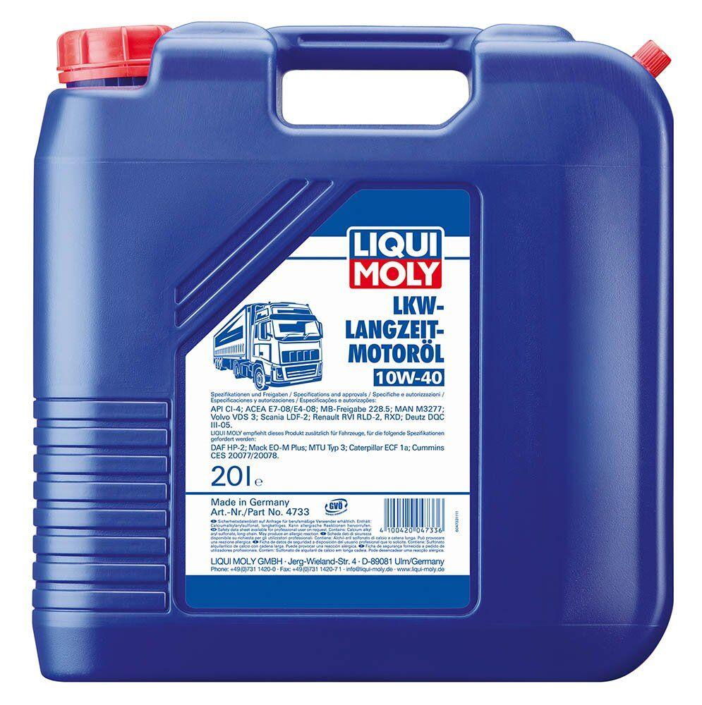 Liqui Moly LKW Langzeit-Motoroil SAE 10W-40спеціально для сучасних високонавантажених дизельних двигунів вантажних автомобілів з максимально подовженими інтервалами обслуговування. Також може застосуються для дизельних двигунів з турбонаддувом і рециркуляцією вихлопних газів.