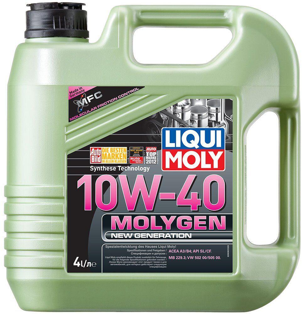 Високоякісне моторне мастило з хорошими антифрикційними властивостями для всесезонного застосування. Нестандартні базові мастила, найсучасніші присадки і спеціальний компонент Молиген дозволили отримати низьков'язке високостабільне моторне мастило, що ефективно запобігає відкладенням, знижує втрати на тертя і оптимально захищає від зносу. Ці властивості дозволяють економити паливо і одночасно збільшити ресурс двигуна. LIQUI MOLY MOLYGEN NEW GENERATION SAE 10W-40 рекомендується для бензинових і дизельних двигунів, включаючи обладнані турбонагнітачем і каталізатором