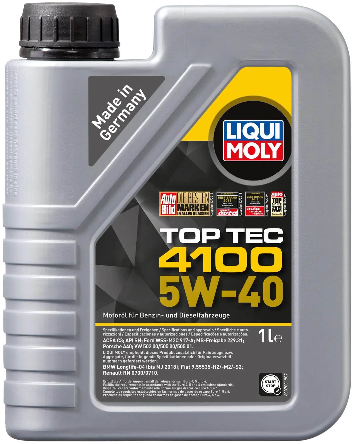 Використання моторного мастила Liqui Moly Top Tec 4100 дозволяє забезпечити високу надійність експлуатації двигуна і збільшення терміну служби сучасних дорогих каталітичних нейтралізаторів і фільтрів саж. Завдяки наявності оригінальних допусків виробників автомобілів, використання цієї оливи дозволяє зберегти усі гарантійні умови при проходженні ТЕ.