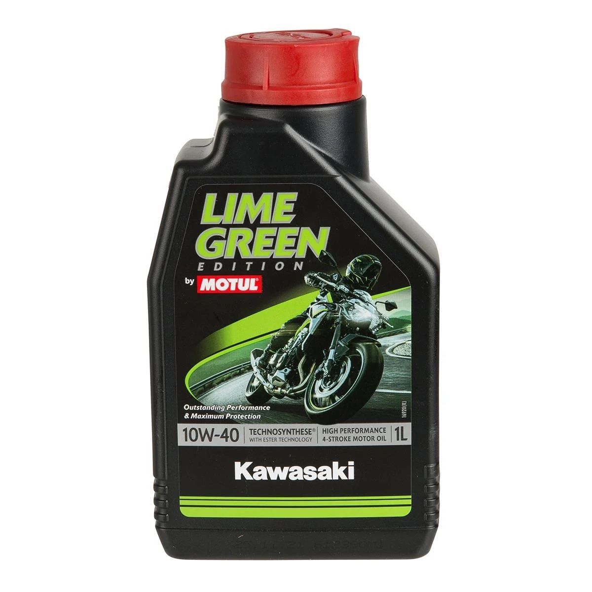 Kawasaki Lime Green Edition Motul 10W-40 — синтетична мотоциклетна олива зеленого кольору, посилена спеціальною технологією Ester, що гарантує зносостійкі властивості для забезпечення довговічності двигуна і коробки передач Вашого мотоцикла Kawasaki.