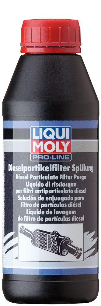 Liqui Moly Pro-Line Diesel Partikelfilter Spulung містить розчинювальні та нейтралізуючі компоненти, для повного видалення забруднень і компонентів очисника після процедури очищення фільтру сажі. Має синій колір. Склад розпилюється в порожнину фільтру сажі, впливає впродовж 5-ти хвилин, далі двигун можна заводити.