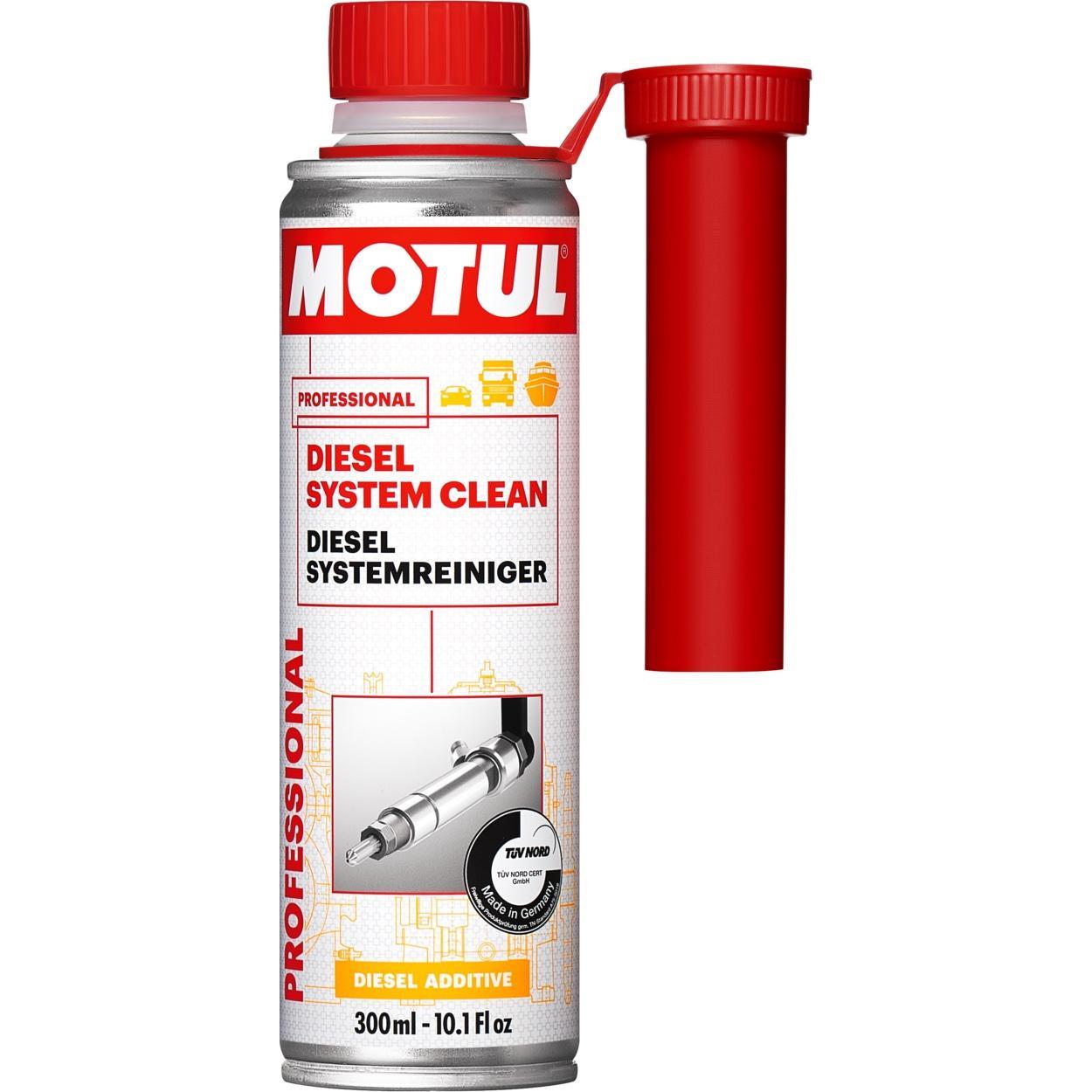 MOTUL DIESEL SYSTEM CLEAN розроблений для використання в всіх типах дизельних паливних систем, в т.ч. в двигунах, оснащених фільтром (DPF) сажі та системою селективно-відновного очищення (SCR). MOTUL DIESEL SYSTEM CLEAN ефективно очищає забруднення і відкладення, що утворюються в паливній системі: конденсат в паливній системі; відкладення в розпилювачах дизельної форсунки; відкладення в паливному насосі; відкладення в камері згорання і на впускних клапанах. MOTUL DIESEL SYSTEM CLEAN забезпечує відмінне мастило поверхонь під час очищення і запобігає повторному відкладенню видалених мікрочасток. Крім того, присадка запобігає окисленню дизельного палива і освіті мікроорганізмів.