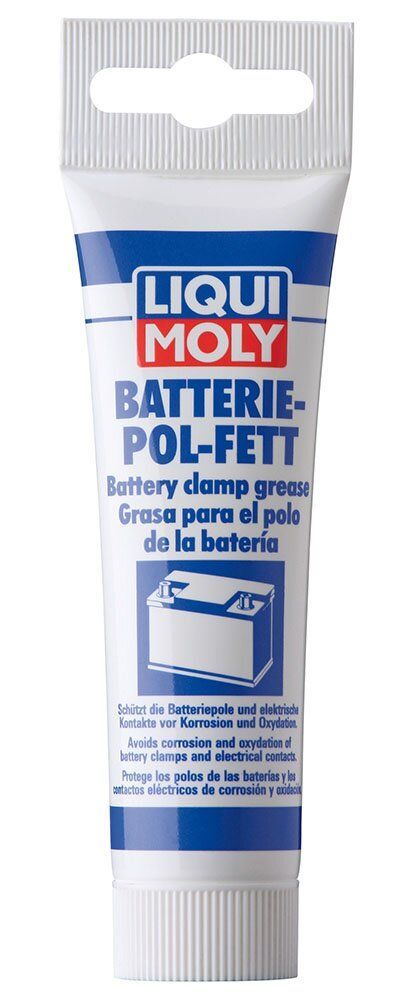 Liqui Moly Battarie-Pol-Fett– спеціальне густе мастило, сумісне з пластиком і призначене для догляду за електронікою автомобіля і її техобслуговування, особливо полюсних контактів акумулятора і електричних сполучних елементів. Забезпечує надійний запуск і тривалий термін служби акумулятора. Високий захист від корозії, запобігає струму витоку і знижує контактний опір.