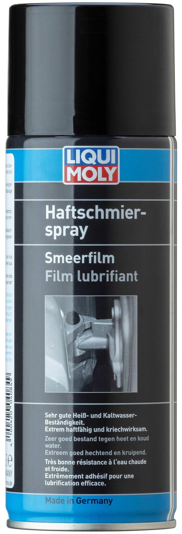 Liqui Moly Haftschmier-Spray – це високоякісне синтетичне, термостабільне комбіноване мастило з надзвичайно хорошими адгезійними властивостями і стійкістю відносно відцентрових зусиль (має стійкість до розбризкування на рухливих поверхнях). Після випару розчинника на поверхнях залишається екстремально стійкий, еластичний шар мастила. Призначений для періодичного інтервального мастила рухливих авто-деталей, таких наприклад як шарніри, кардани, штанги, рульова тяга, дверна стрічкова скоба. Наноситься у необхідній кількості на заздалегідь очищені поверхні. Необхідно враховувати відповідні приписи виробників автомобілів.