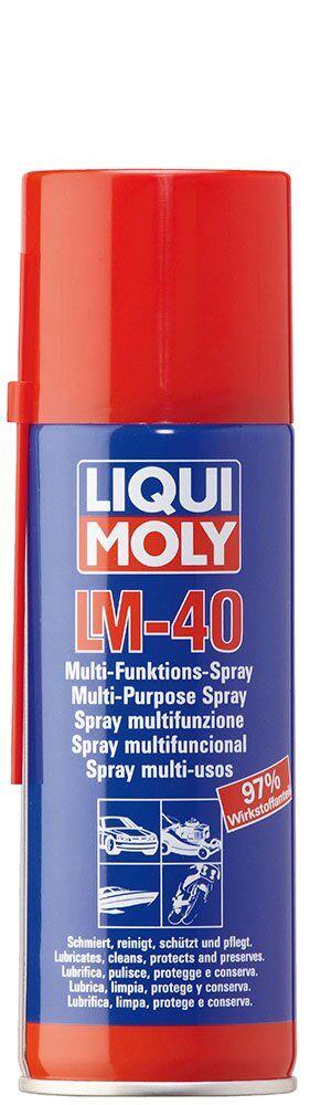 Liqui Moly LM 40змащує, очищає, розчиняє, захищає і доглядає. Забезпечує надійне мастило поверхонь, що труться. Завдяки дуже високій проникаючій здатності LM-40 проникає в самі важкодоступні місця. Розчиняє міцний шар іржі на болтах і гвинтах за дуже короткий час. Очищає дуже сильні масляні та жирові забруднення, відштовхуючи їх від поверхні. Захищає від іржі та корозії і забезпечує догляд за хромованими поверхнями.