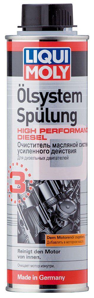Liqui Moly Olsystem Spulung High Performance Diesel видаляє відкладення, нагар і кокс, що утворюються при експлуатації під високим навантаженням і в нештатних режимах роботи всіх типів чотиритактних дизельних двигунів. Має спеціальну формулу для дизельних двигунів з сильно забрудненими масляними системами, а також для випадків перегрівання двигунів, або при використання низькосортних пально-мастильних матеріалів. Розчиняє шламові відкладення, смолу і нагар. Грунтовно очищає верхню частину циліндра. Безпечно, м'яко, пошарово очищає. Не забиває канали і протоки масляної системи. Випаровується відразу після роботи. Без залишку виводиться з системи. Не погіршує властивості нової мастила. Утворює захисний шар, що знижує тертя.